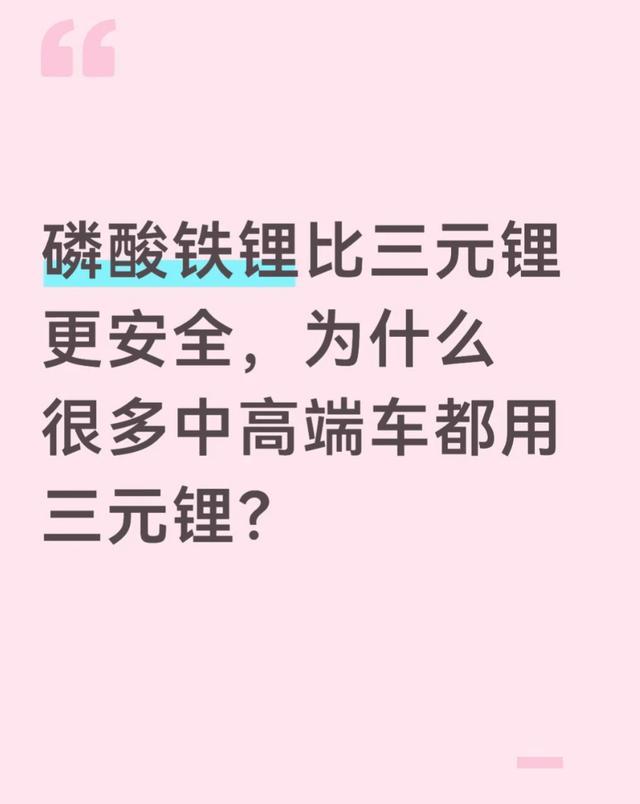 中高端车型的用户对价格敏感度更低,更在意续航、性能、豪华感与品牌调性。车企选用三元锂,本质是用成本换体验、用技术换定位。如果高端车也普遍搭载磷酸铁锂,虽然更安全,但续航、低温表现、动力输出都会打折扣,直接拉低产品档次,也不符合高端用户的期待。这就是为什么即便磷酸铁锂已成主流,高端阵营依然不肯轻易放弃三元锂。